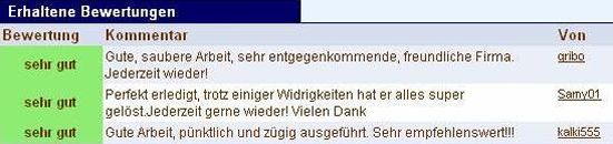 Kommentar minniemaus: Zuverlässig,Schnell,Sauber,Nett,Kompetent,Freundlich.Spitzen Klasse .Ihr seid wirklich absolute Spitze.jederzeit wieder.Viel Erfolg weiterhin.
